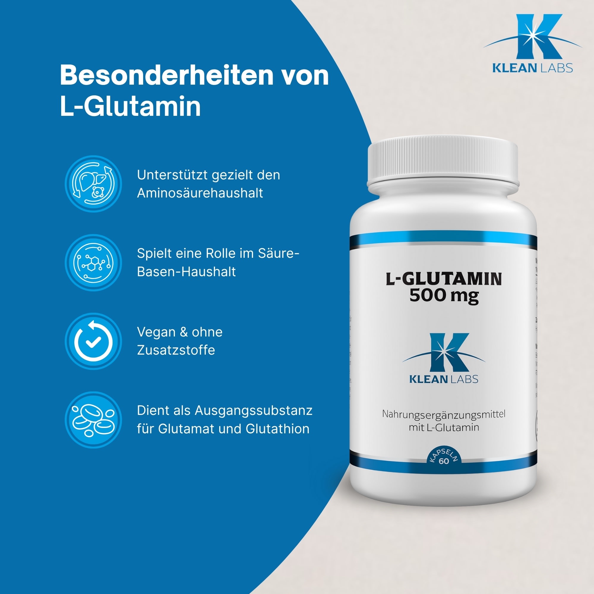 L-Glutamin 500 mg – Für den erhöhten Bedarf an Aminosäuren